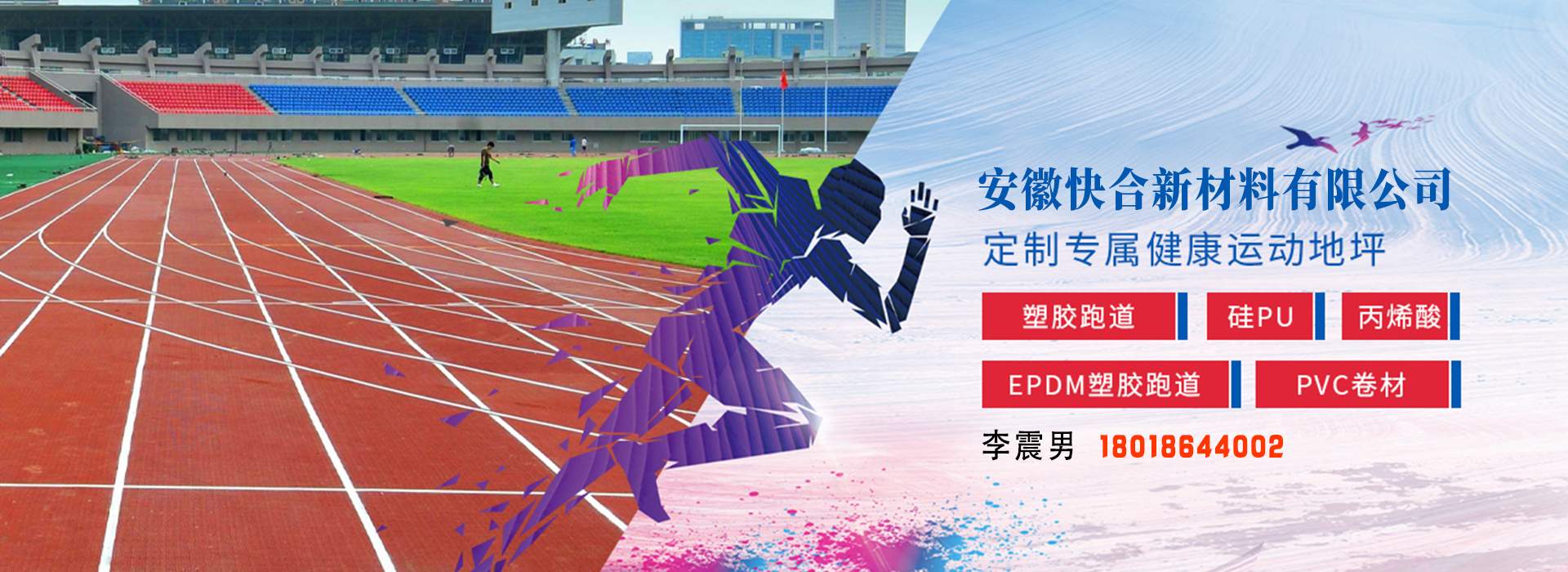 安徽快合新材料有限公司塑膠跑道,硅PU球場,人造草坪,丙烯酸球場材料,幼兒園EDPM場地材料等以及從事各類運動場地及配套設施的施工建設。定位于集運動場地咨詢設計、科研開發、生產銷售及工程施工為一體的多元化產業公司。